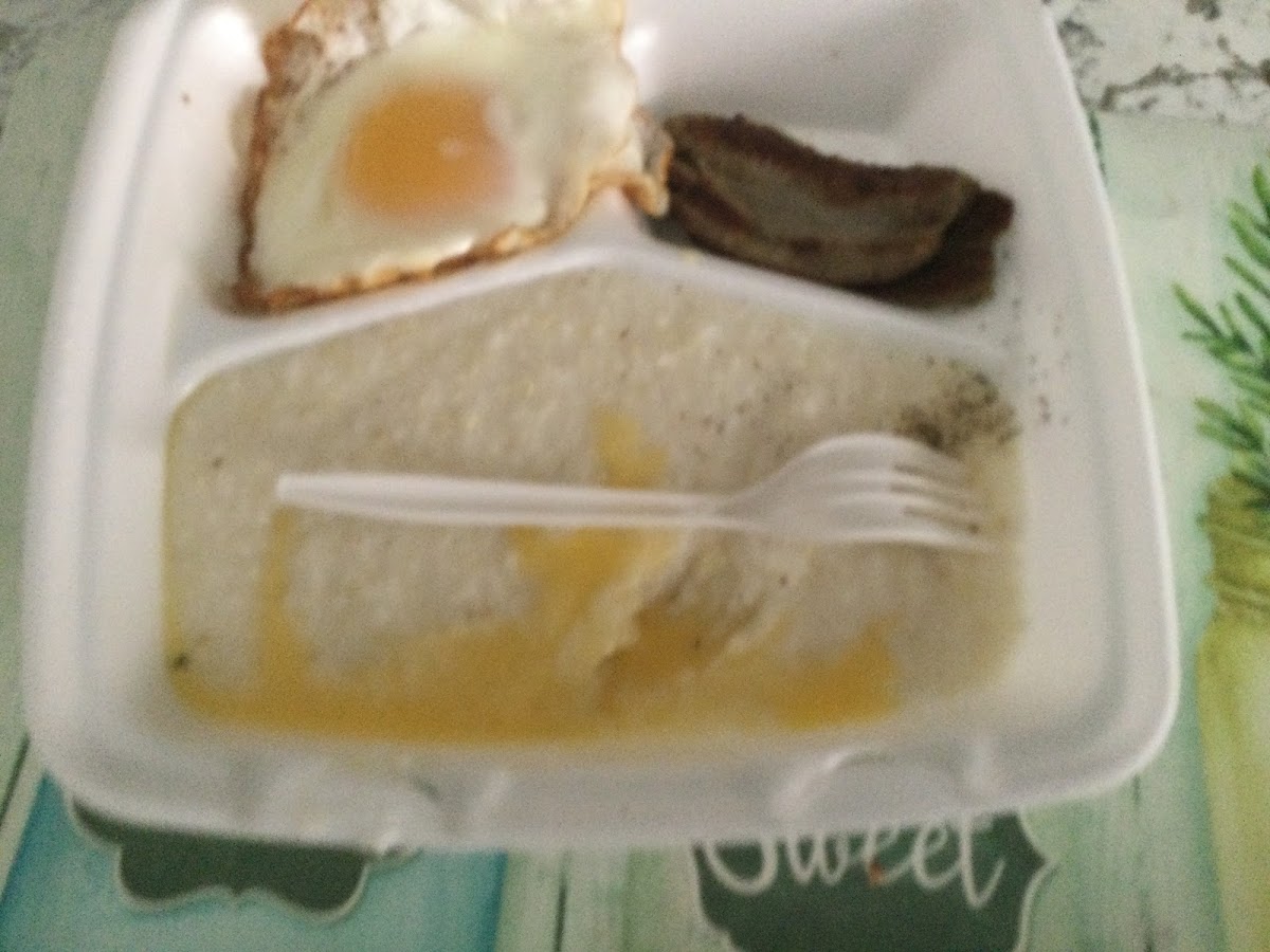 Sunny Side Up Eggs Grits with Butter and Turkey Sausage